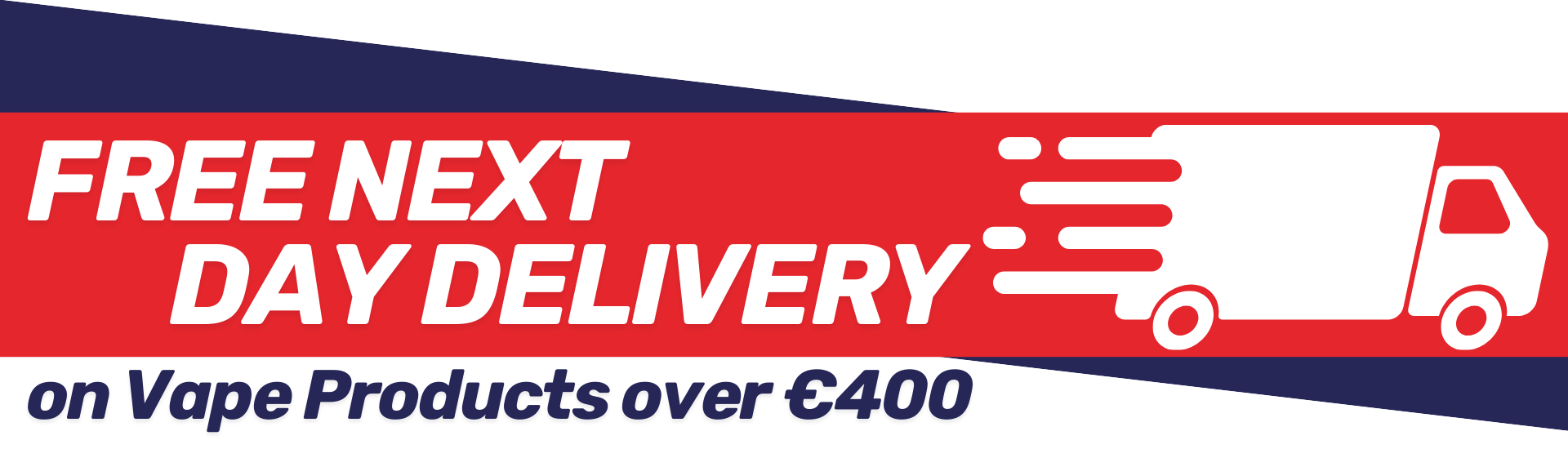 *To be eligible for Free Next Day Delivery your order must be €400 or greater. The €400 minimum order only applies to Vape Products.